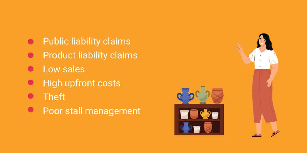 The biggest risks for your business at a craft fair involve operational issues, legal issues, and financial losses. Understanding these risks sets you up well to protect against them.
