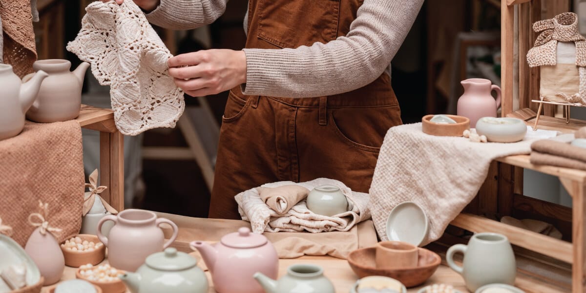 • Setup – Your setup needs to be aesthetically pleasing and inviting in order to attract attention. Vertical displays allow you to display the most products even with smaller spaces, so use shelves and crates to elevate your creations.